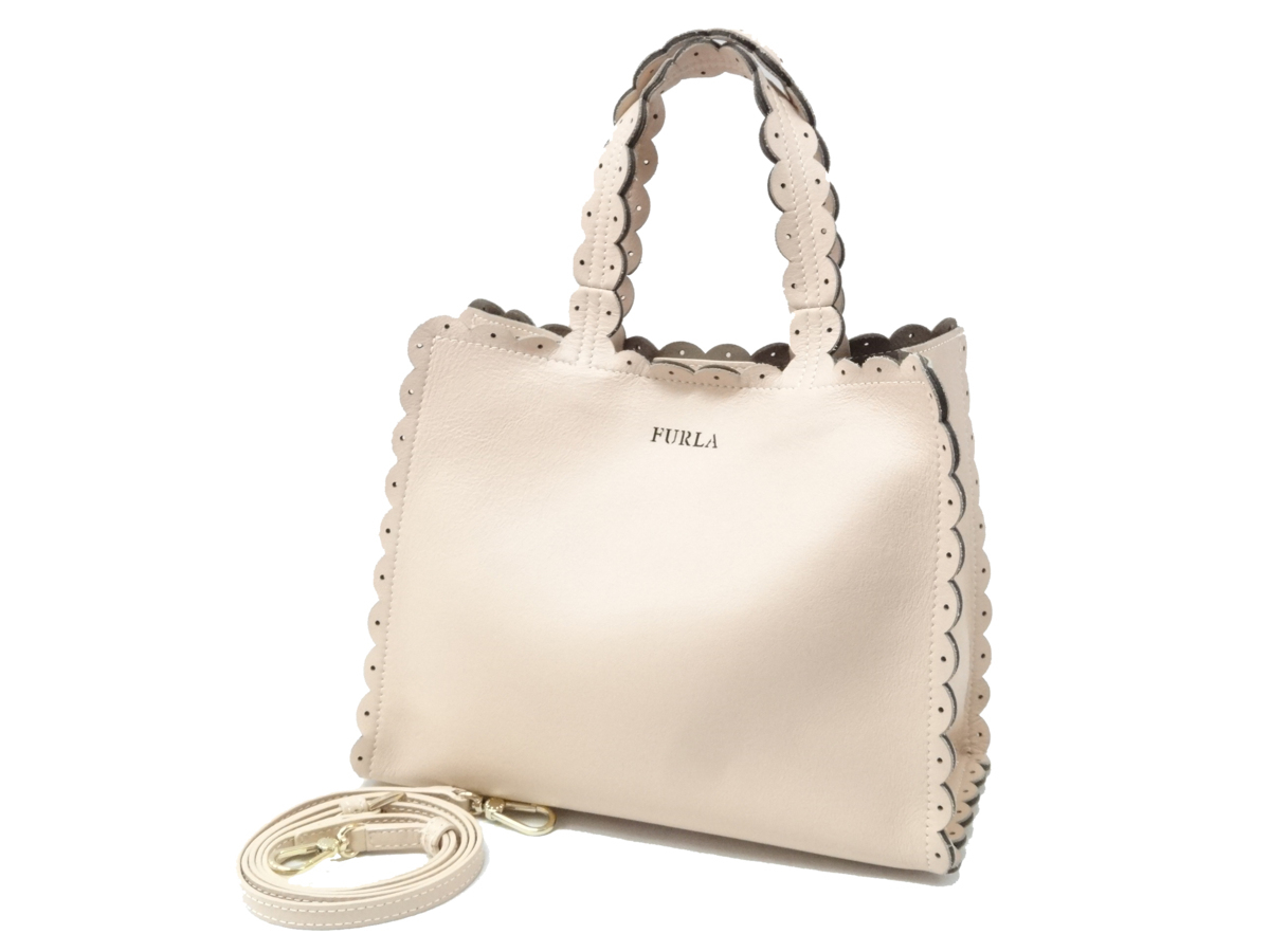 > 【良品】フルラ FURLA メルレット トートバック ライトピンク ソフト牛革 マーレット 2WAY レザー