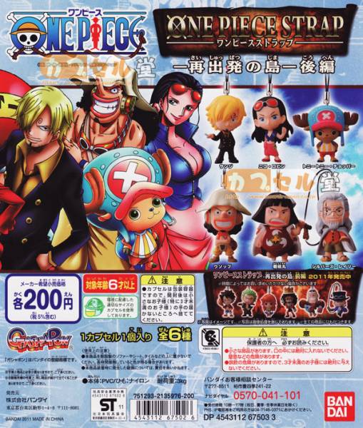 > ONEPIECE ワンピーストラップ再出発の島後編フルコンプ6種+POP【サンジ ニコ・ロビン チョッパー ウソップ 戦闘丸 シルバーズ・レイリー