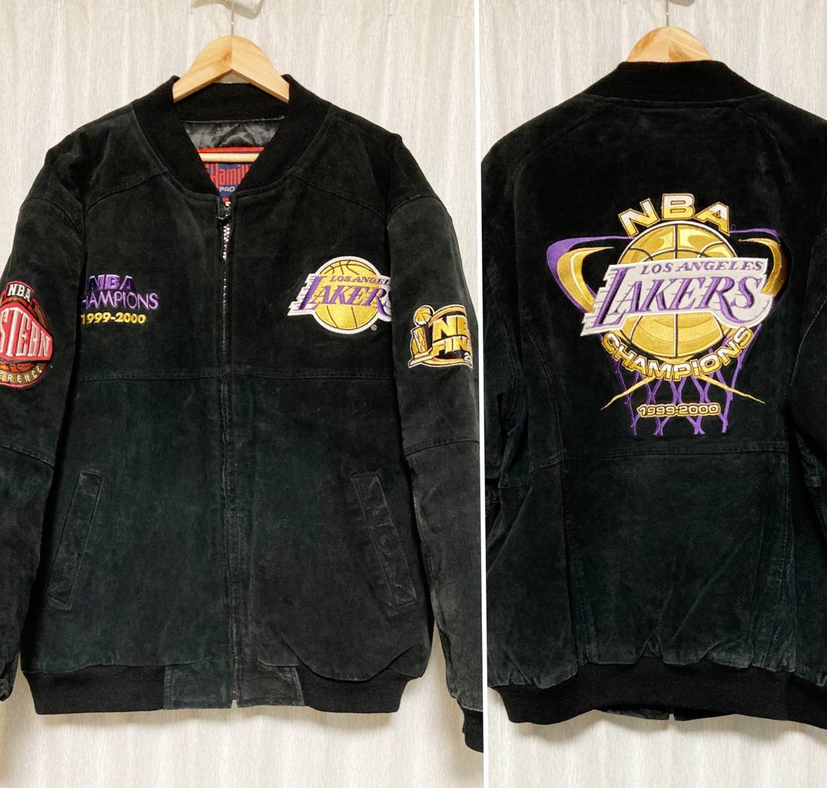 - [00s Jeff Hamilton] LAKERS 2000年優勝記念 レイカーズ オールレザースタジャン スウェードレザージャケット XL 本革 ジェフハミルトン