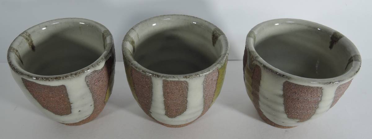 - ☆25H■大谷焼 矢野陶苑 お猪口/ぐい呑み 内側灰色 3個セット■未使用