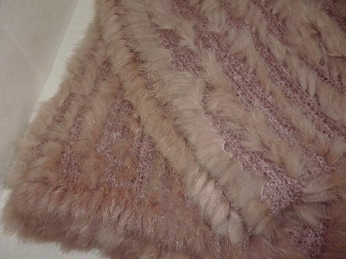 - 送料無料★お洒落なラビット・ピンク系ストール・長方形★USED(超美品)