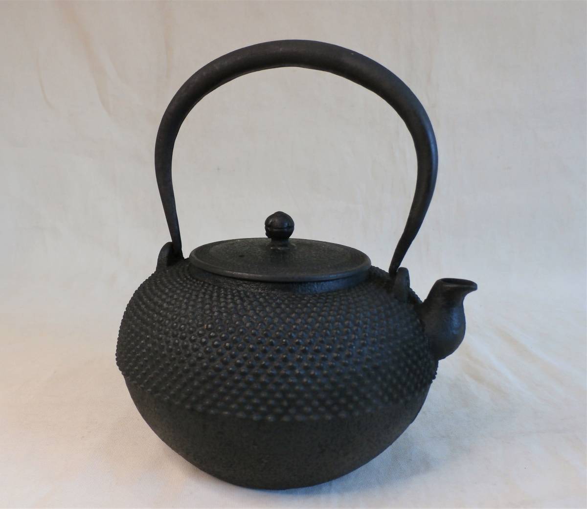 - 煎茶道具 鉄瓶 茶道具 丸型 金属工芸 アラレ O 古民具 骨董 古美術 古道具 鉄釜 コレクション 現状品