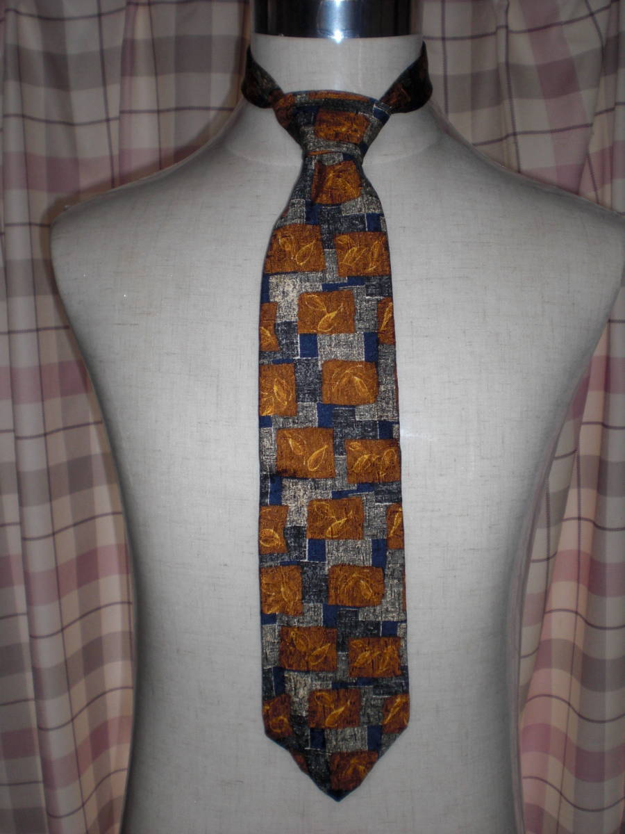 - 92) Ermenegildo Zegna 紺色ベースの茶色系幾何学模様のネクタイ(USED、美品)