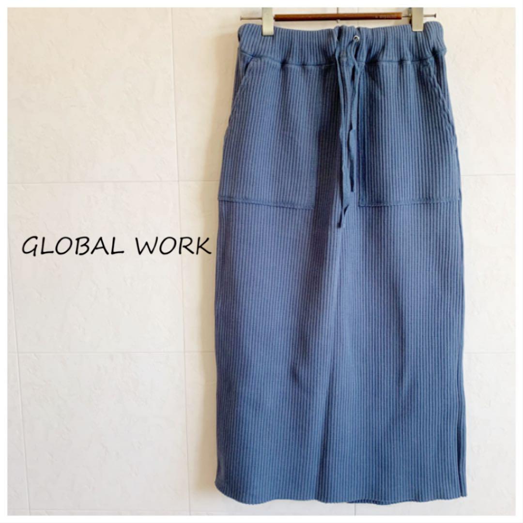 - GLOBAL WORK ブルー ワッフル しっかり生地 スカート タイト gw10