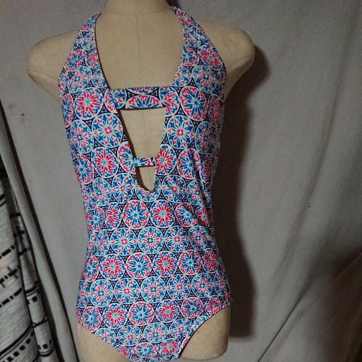 - M302◆CLEAN WATER◆胸元大胆カット♪◆セレブな模様柄ワンピース水着◆輸入品Mサイズ