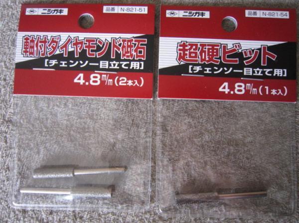 - ニシガキ チェンソー目立て用 軸付きダイヤモンド砥石 4.8mm(N-821-51) 超硬ビット 4.8mm(N-821-54) まとめて 2個セット