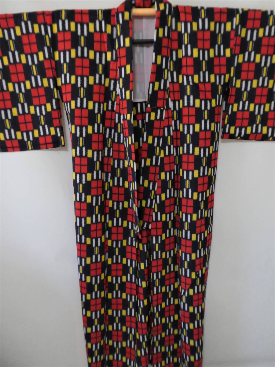 - ⑤和装 着物 羽織 セット 総柄 赤 黄色 レトロ アンティーク