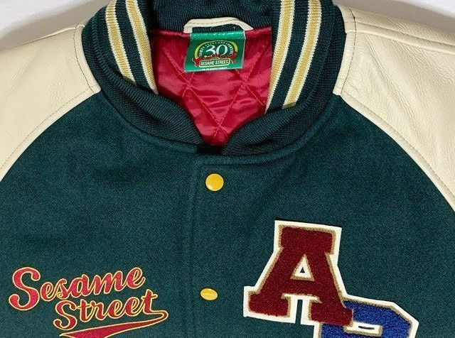 - 90's 1999 30周年 限定 セサミストリート Sesame Street スタジャン アワードジャケット 袖革 ワッペン 刺繍 サイズM [o-0008]