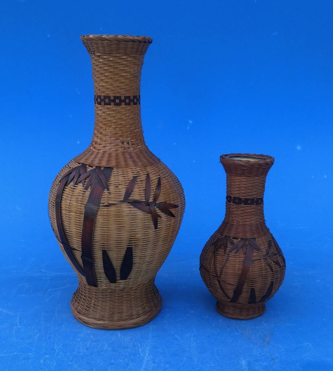 - 昭和レトロ竹を編んで作られた一輪挿し大小1組程度悪いです