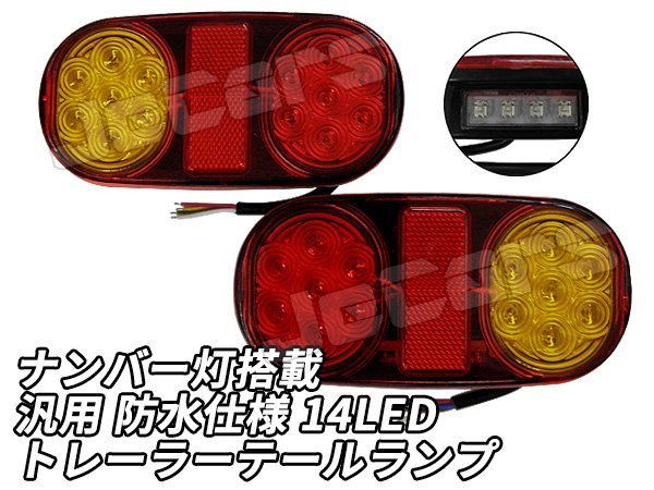 - トレーラー LED テールランプ 汎用 防水仕様 14灯 一体型ナンバー灯搭載