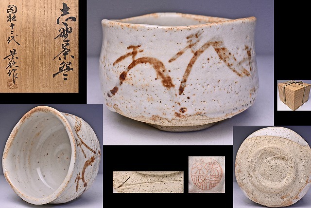 - 加藤景秋 ( 陶祖12代 )★ 志野 茶碗 ★ 共箱 共布 ★ 大振りで存在感のある造形に侘感のある景色の逸品 ★ 検 加藤清三 加藤康景 加藤正治