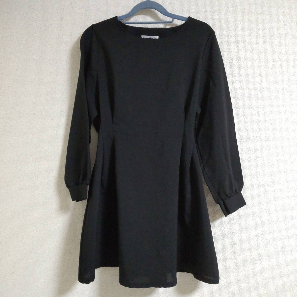 > wat26 【美品】play bonbon ワンピース ミニスカート ブラック 黒 長袖 薄手 腰ゴム シンプル 定番 デート LIVE 可愛い パーティ