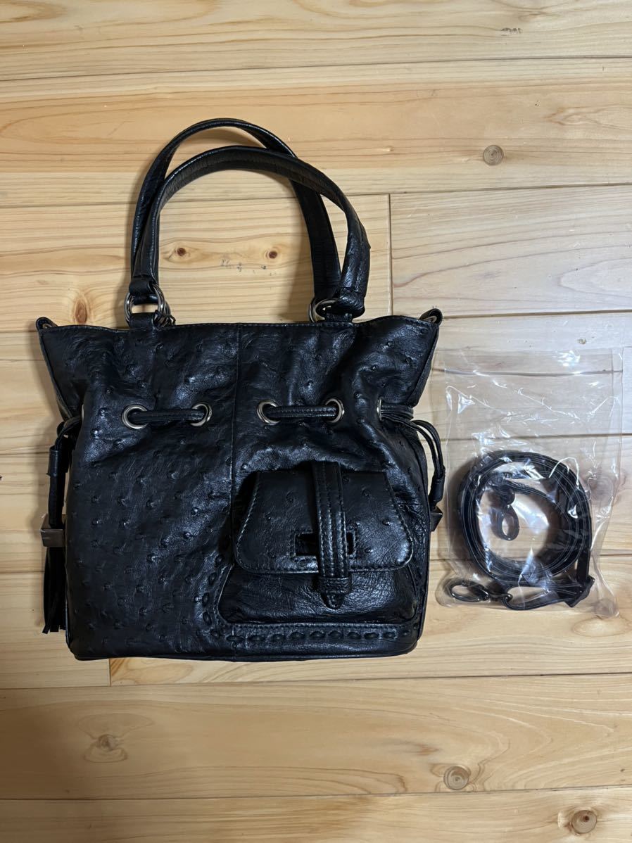 - オーストリッチ バッグ ハンドバック ショルダーバック ブラック 黒