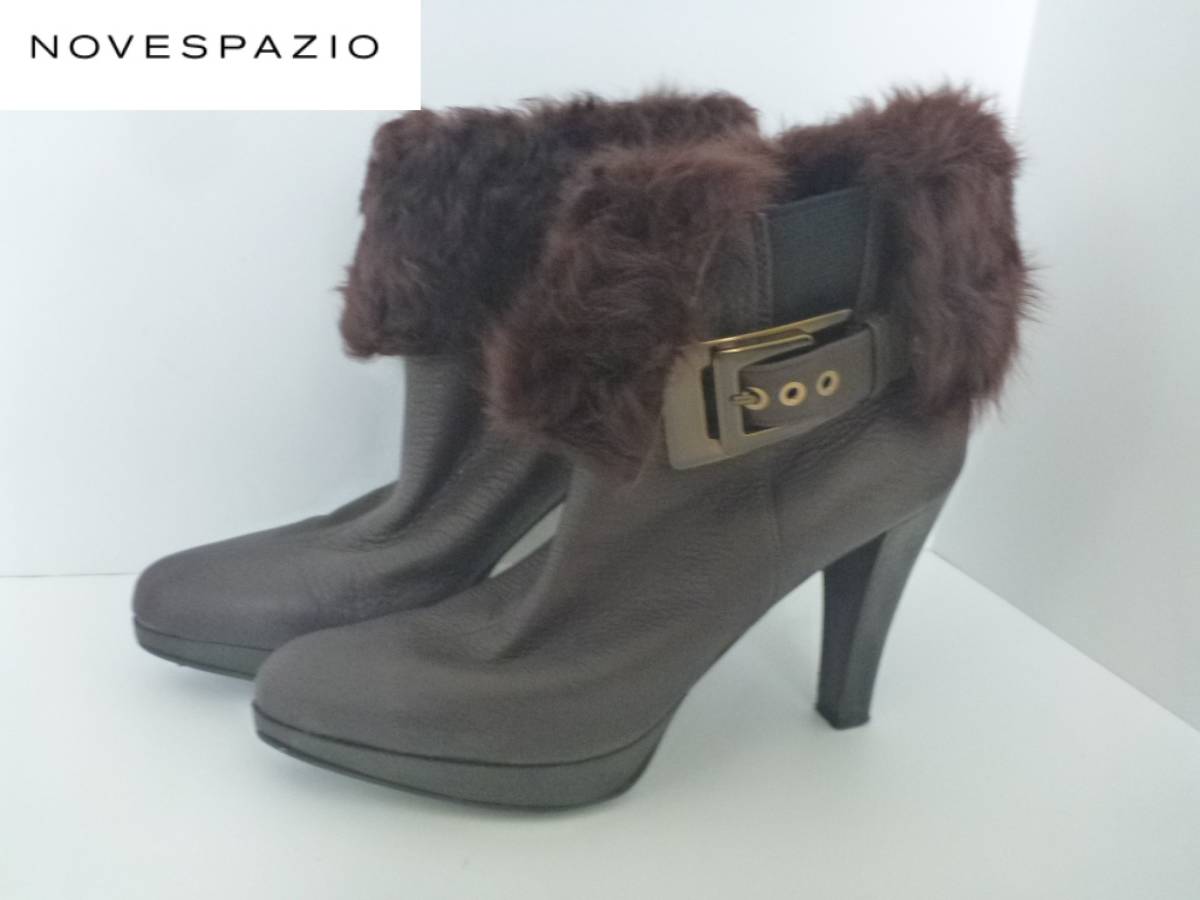 - 3万 美品 NOVESPAZIO ノーベスパジオ ★上質レザー+ファー 茶 ブラウン ショートブーツ 23