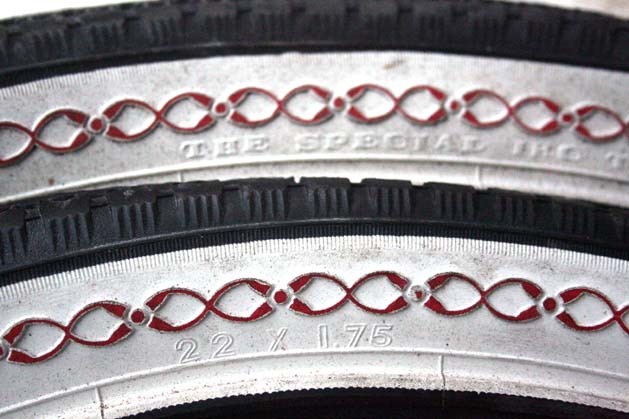 > 70sリボン柄新品自転車タイヤ2本 検丸石富士セキネ宮田山口光川村能率ヒヅル帝輪ダグラス水谷自転車デコチャリBMXモンテカルロ自転車バイク