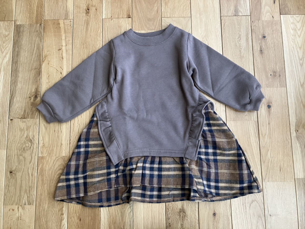 - 新品 ペアマノン 裏起毛 チェック ドッキングワンピース トレーナー 90センチ