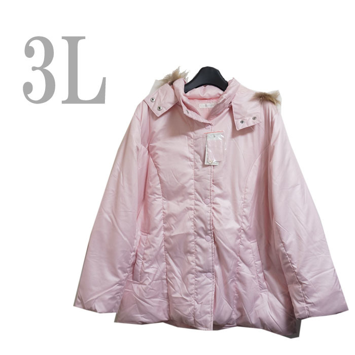 - ●新品/ダウンコート/ピンク系/3L/フード/ファー/レディース●あ1098