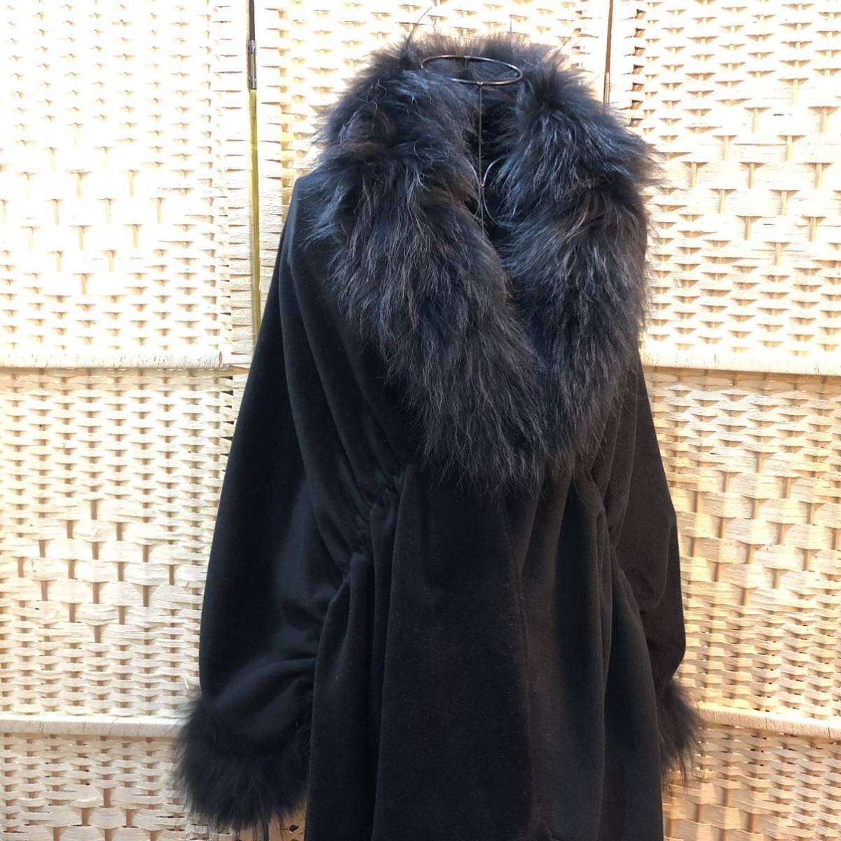 - 【美品】THE FIRST★ザファースト マント ショール 黒 毛皮コート レディース 羽織