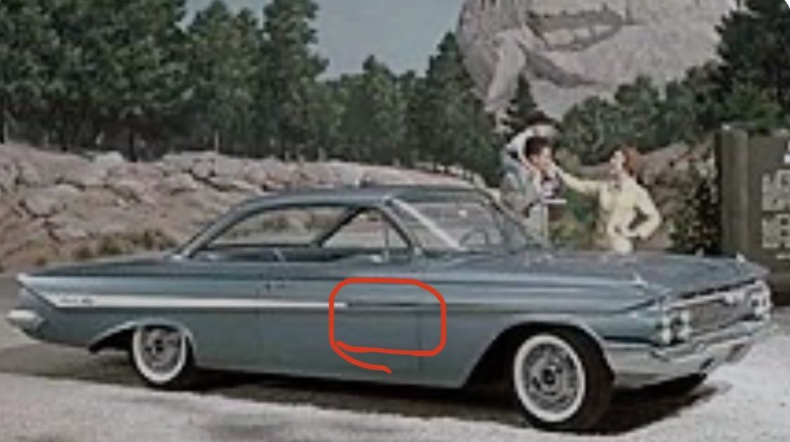 - 1961シボレーインパラドアモールフロント左右セット新品。インパラサイドモール インパラモール ローライダー ハイドロ61インパラ2ドア