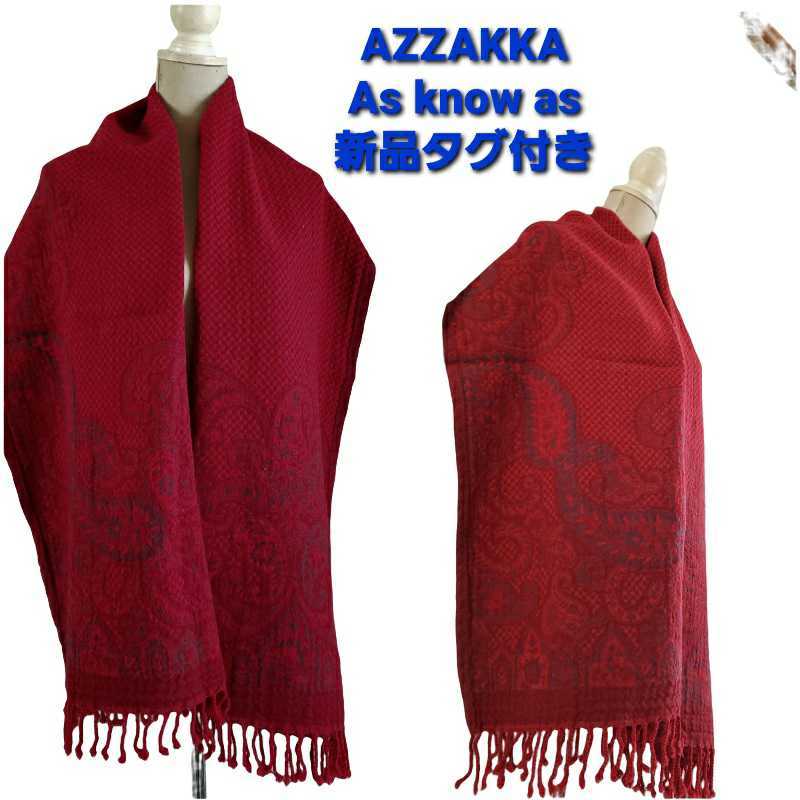 - 新品タグ付き AZZAKKA AS KNOW AS 深い赤のウールストール