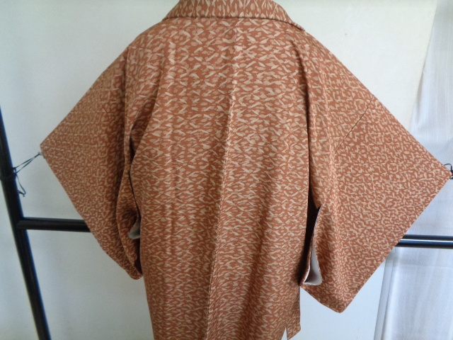 - b421-80 羽織 正絹 総柄 染め文 羽織紐付き 裄62センチ 着丈77センチ