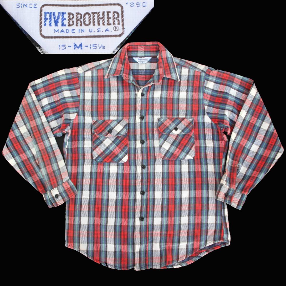 - (29617)70s-80s FIVE BROTHER (5BROTHER ファイブブラザー) ネルシャツ サイズM(ワークシャツMADEINUSAアメリカ ヴィンテージ70年代80年代)