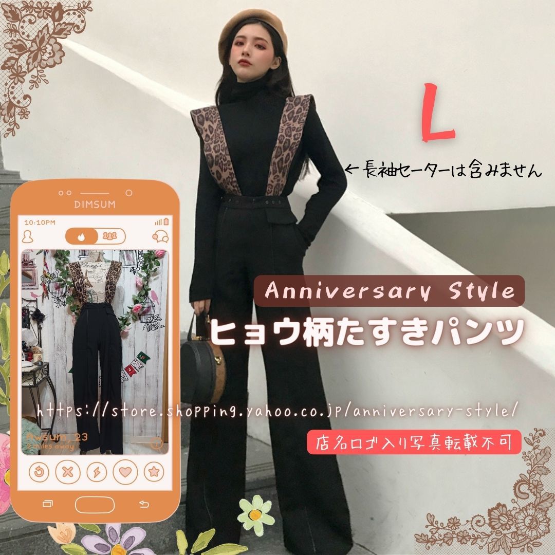 - ヒョウ柄 たすき サロペット パンツ L 即納 豹柄 ボトムス オーバーオール 7315506 ワイドパンツ ガウチョパンツ レオパード レディース 黒