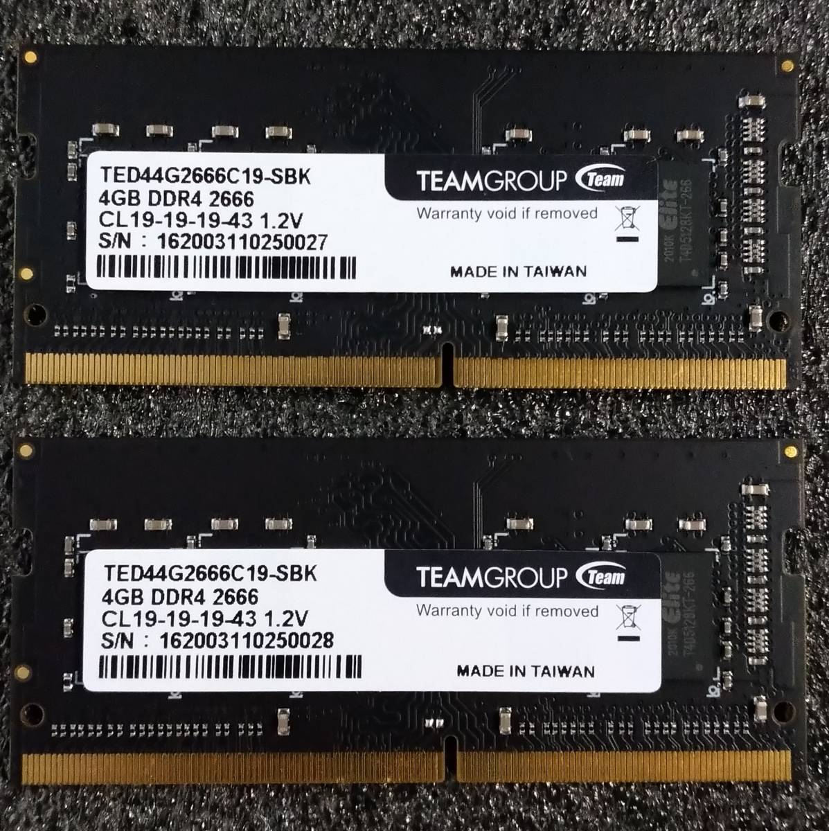 > 【中古】DDR4 SODIMM 8GB(4GB2枚組) TEAM TED44G2666C19-SBK [DDR4-2666 PC4-21300]