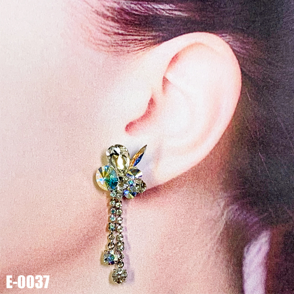 - 大粒華やか!! 揺れる イヤリング スイング スワロフスキー キラキラ パーティー 結婚式 ネジバネ式 ◇E-0037