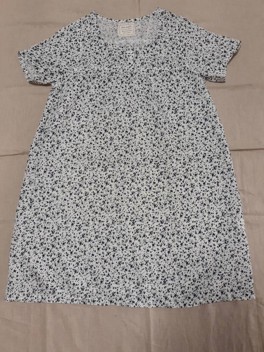 - 半袖チュニック ワンピース 小花柄 白 ホワイト サイズM 洗濯可 中古品