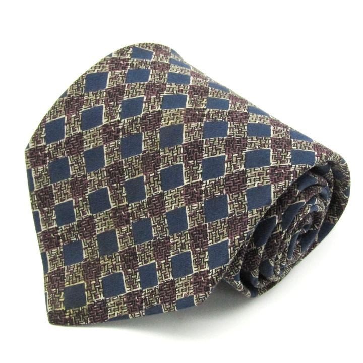> クレージュ 格子柄 チェック柄 シルク イタリア製 ブランド ネクタイ メンズ ネイビー系courreges