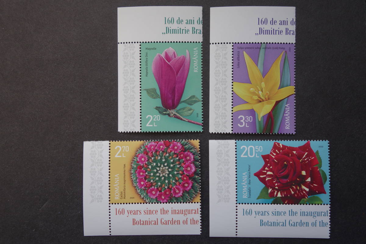 - 外国切手: ルーマニア切手 「ブカレスト植物園160年」4種完 未使用