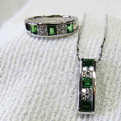 > 【値下げ交渉は質問欄より】鮮やかな透き通ったグリーンガーネット2点セット☆プラチナ指輪&ペンダントネックレス☆♪♪