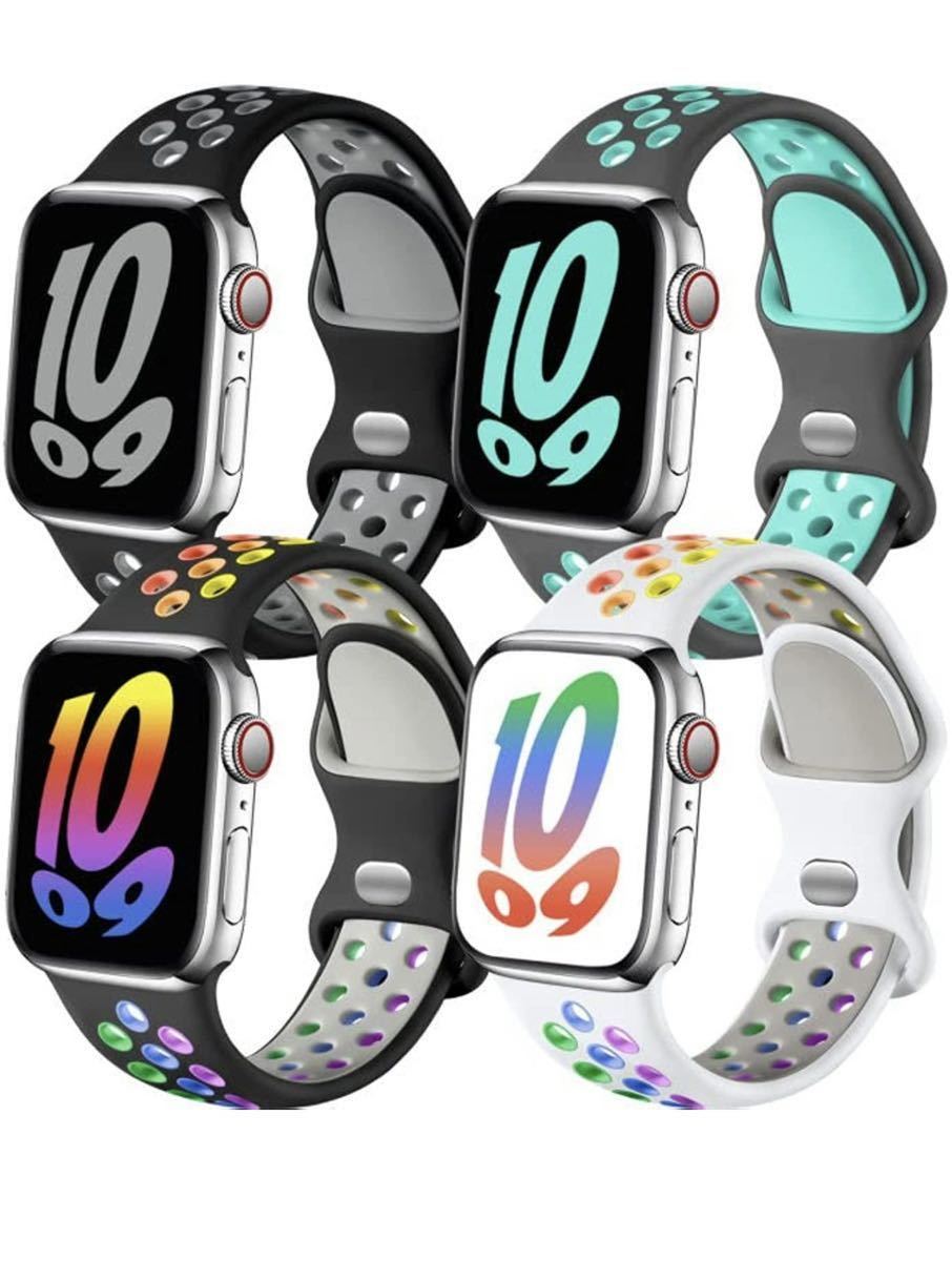 - 4本セットアップルウォッチ バンド AppleWatch バンド 全シリーズ対応 スポーツ 軽量 シリコン ラバー スポーツ 穴あき 38/40/41mm
