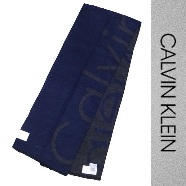 - 送料無料 新品 Calvin Klein MUFFLER カルバン クライン マフラー ネイビー ストール スカーフ CK 正規品