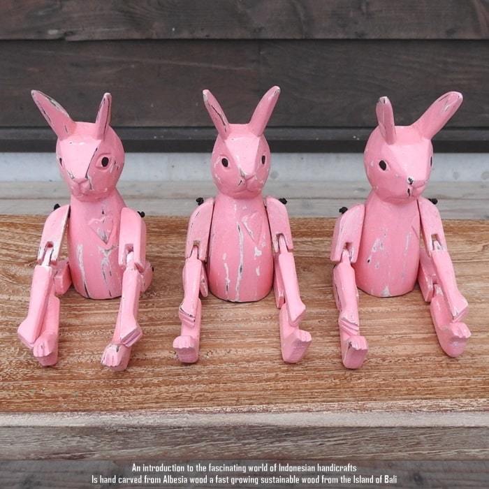 > お座り うさぎさん Sサイズ ウェルカム人形 兎 ウサギ 木製 木彫りの置物 動物インテリア バリ雑貨 アジアン雑貨 動物置物 木製オブジェ