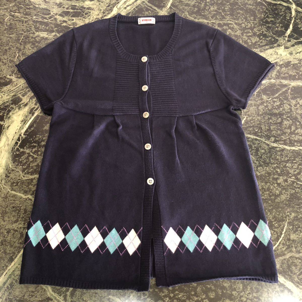 > 【美品】McGREGOR★マクレガー 綿ニットカーディガン Mサイズ 紺色 ネイビー アーガイル 半袖カーディガン レディース