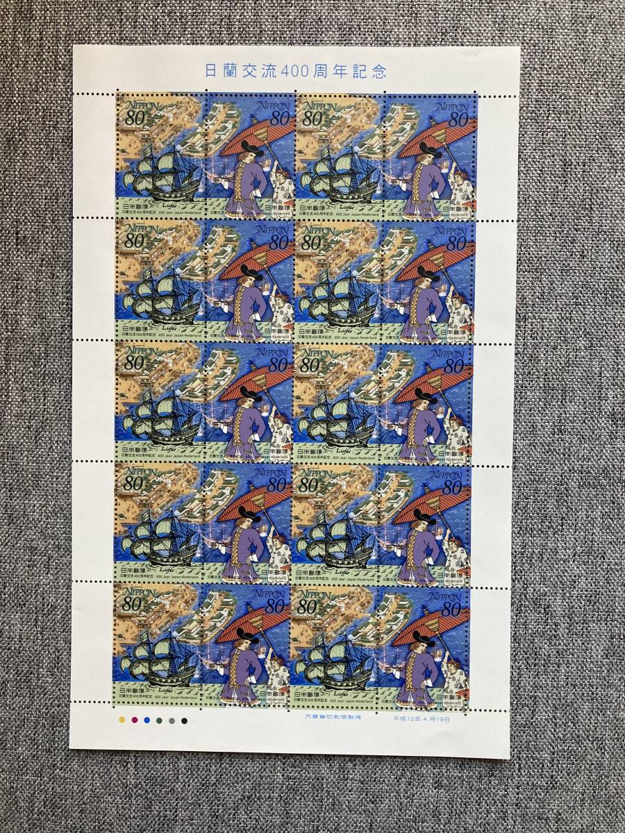 > ★未使用 日蘭交流400周年 日本 オランダ デ・リーフデ号 オランダ人 長崎 出島 平成12年 2000年 切手シート 80円 20枚 日本郵便