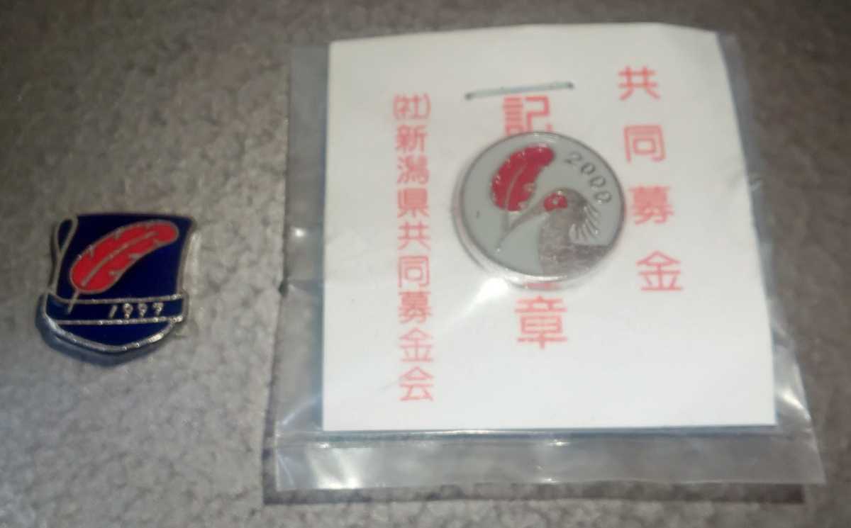 - 赤い羽根共同募金 バッジ2個セット 新潟 トキ 1997年 2000年 バッチ レトロ