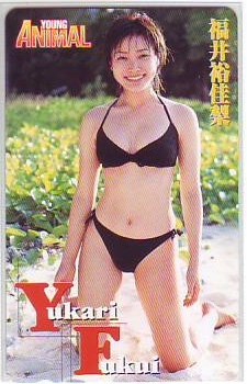 - 福井裕佳梨 ヤングアニマル抽プレ 黒ビキニ テレカ 未使用・Aランク
