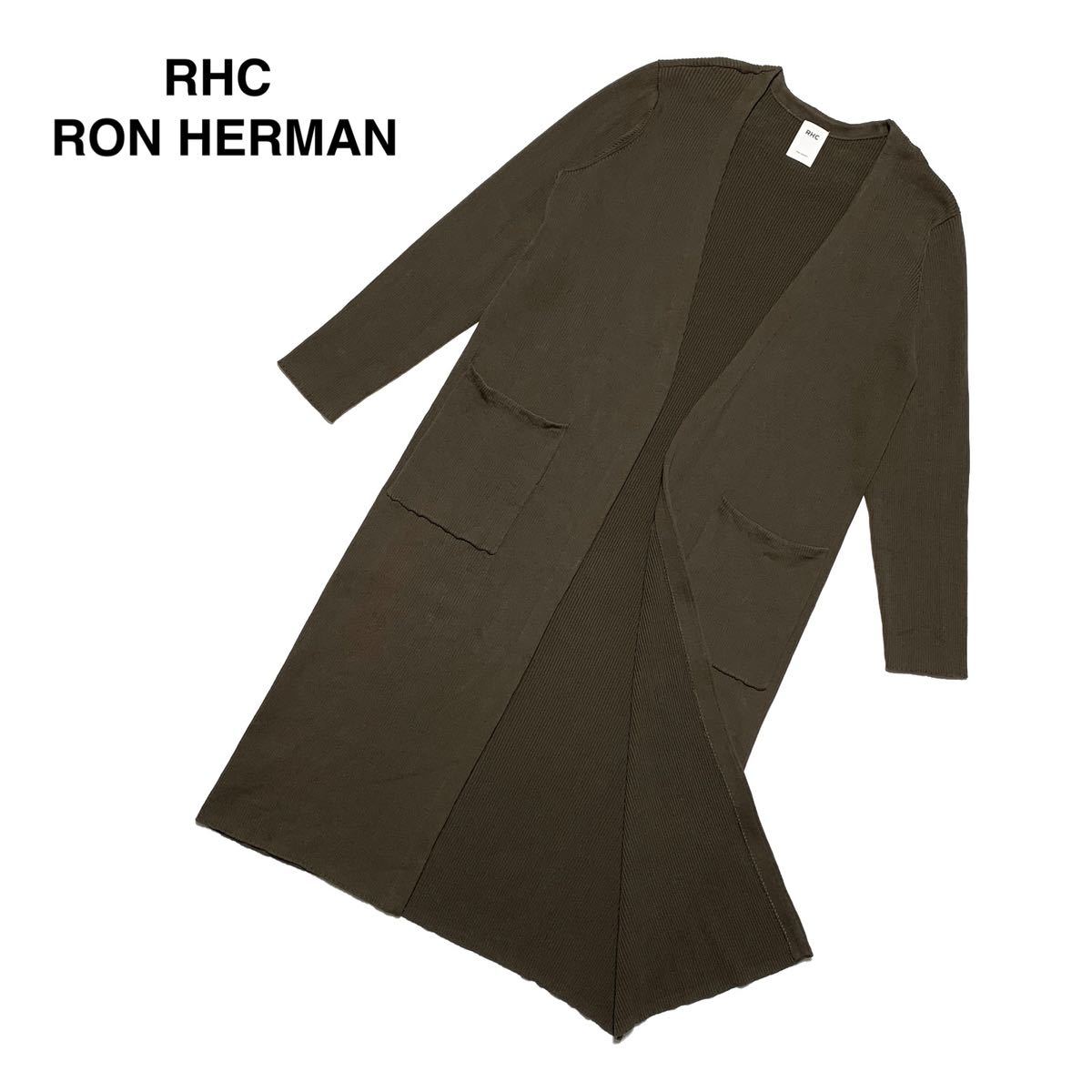 - ☆良品 ロンハーマン RHC RON HERMAN ボタンレス リブ編み コットンニット ロング カーディガン size S ブラウンカーキ