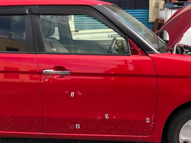 > 34594☆部品取☆N ONE N-ONE JG1/JG2☆右フロントドア☆R81 赤 ☆バイザー欠品