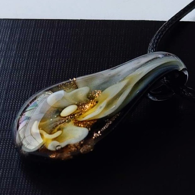 - ランプワークペンダント ドロップ(流花、金砂) Y