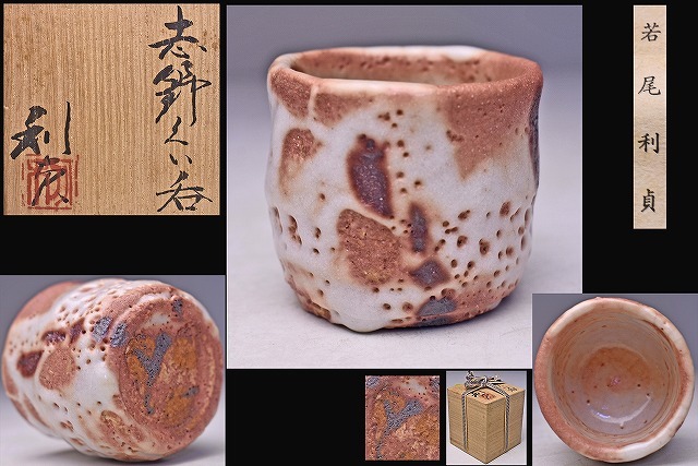 - 若尾利貞 ★ 志野 ぐい呑 ★ 共箱 栞 ★ 釉景の良い逸品 ★ 岐阜県 重要無形文化財保持者 ★ 酒器