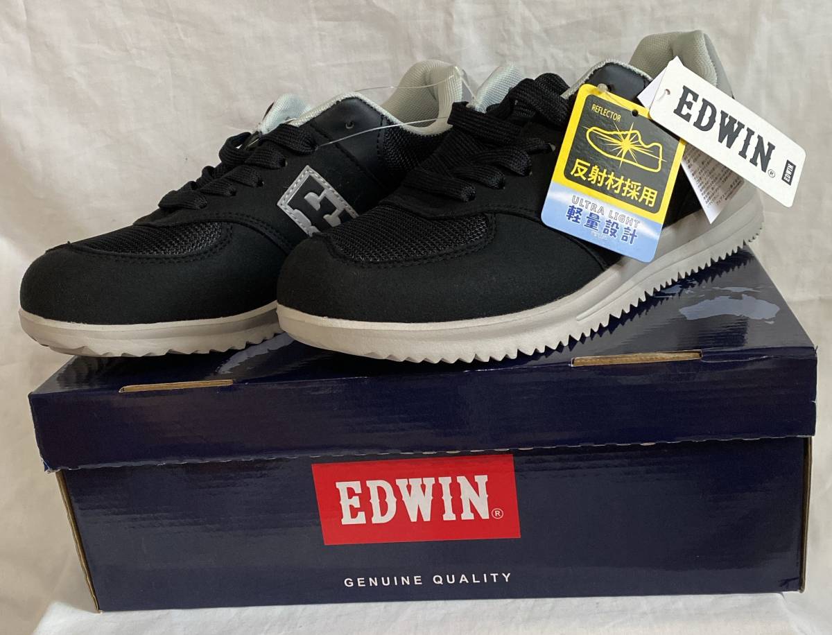 - ウオーキングシューズ 26.5cm EDWIN/エドウィン 黒色系 カップインソール 反射材 軽量☆☆未使用品