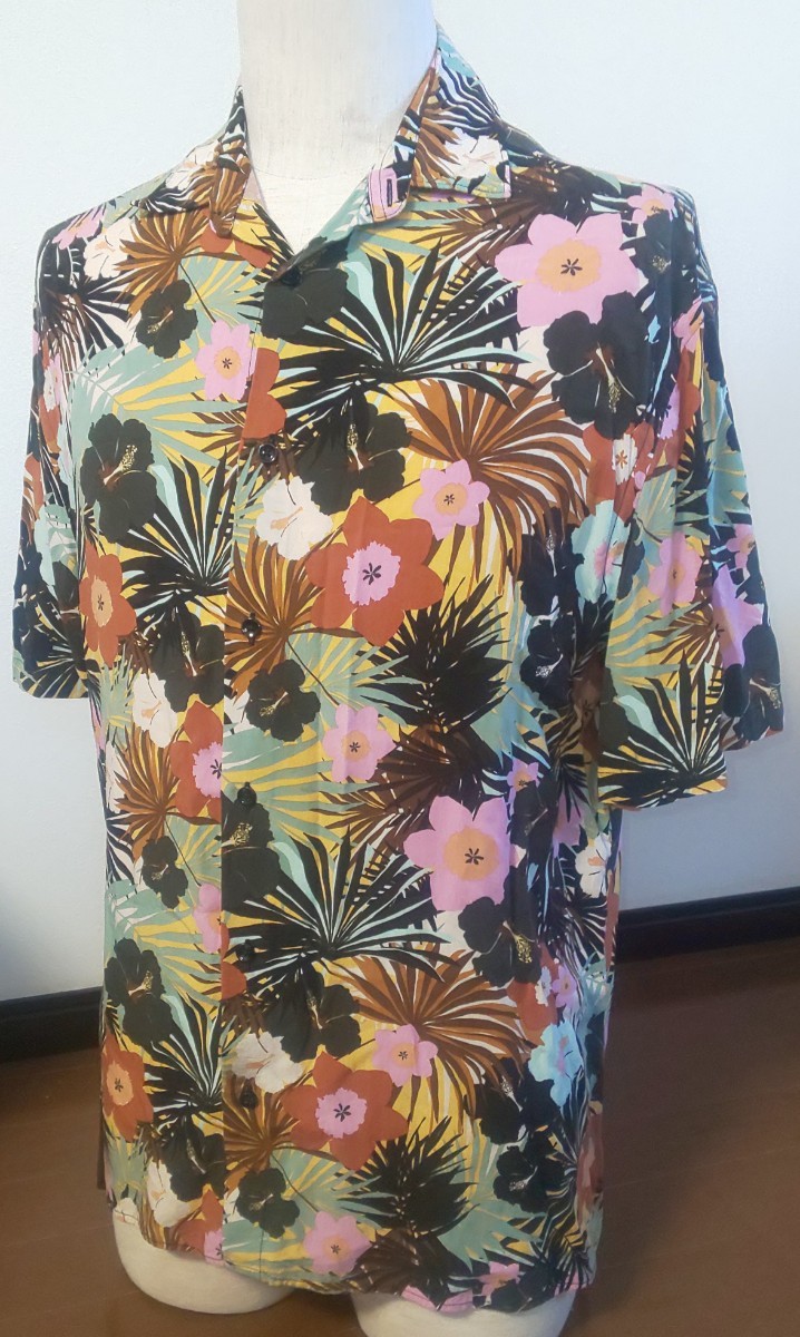 - 古着 ZARA MAN ザラ アロハシャツ 38 花 ハイビスカス ヤシ カラフル ポルトガル製品 柔らかい 大きめサイズ