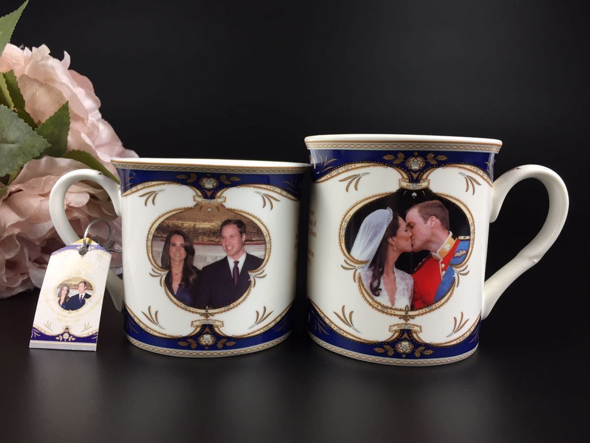 - 英国ロイヤルクレスト◆ ウイリアム王子キャサリン妃 ウエディングマグカップ 2個セット