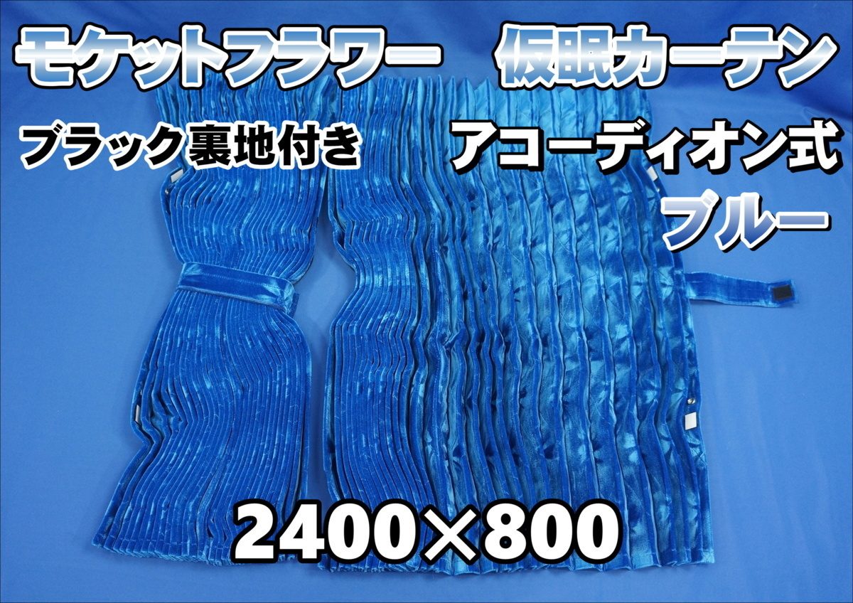 - モケットフラワー コスモス 仮眠カーテンセット 横2400mm×縦800mm ブルー/ブラック裏地付き