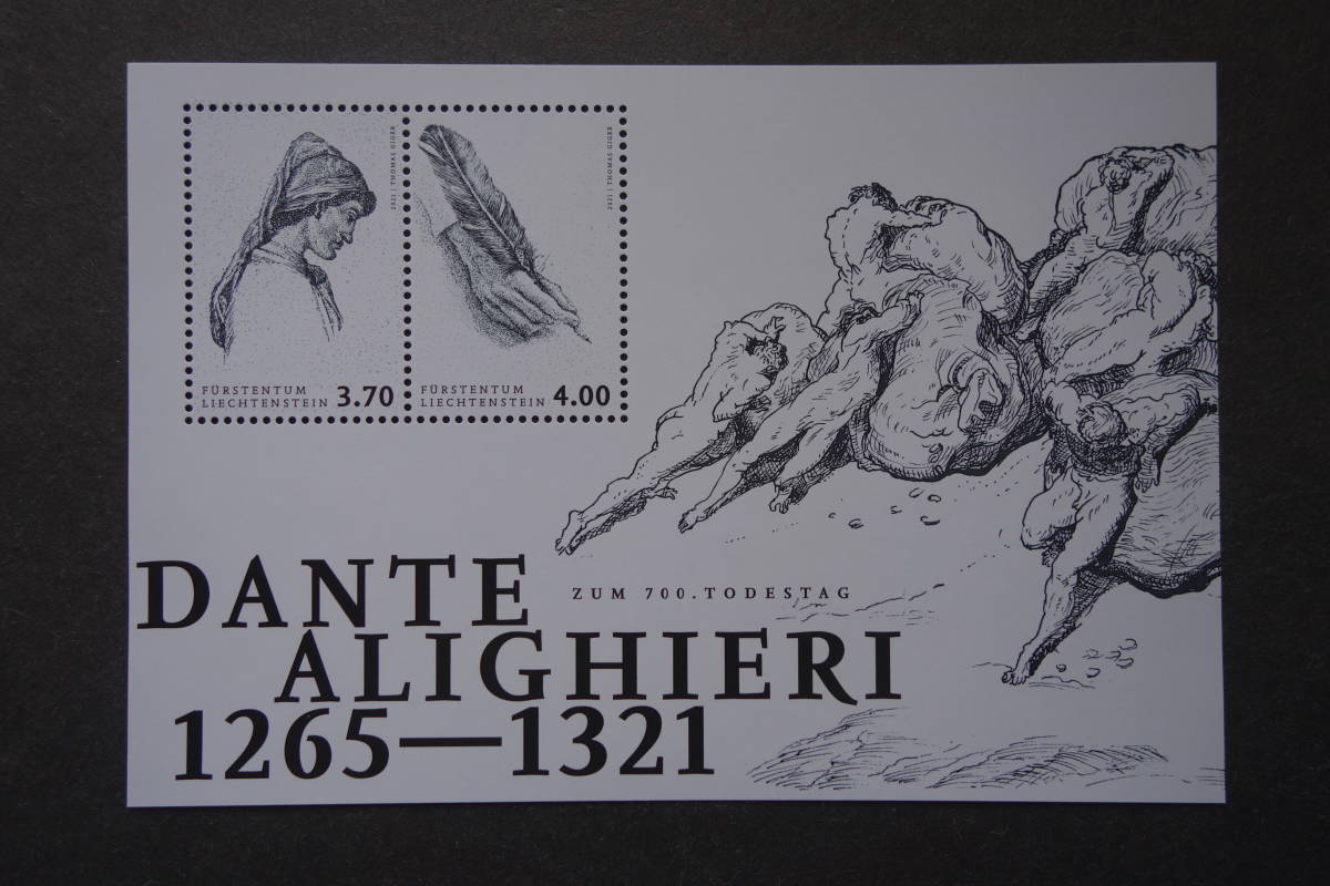 - 外国切手:リヒテンシュタイン切手 「ダンテ・アリギエーリ没後700年」小型シート 未使用