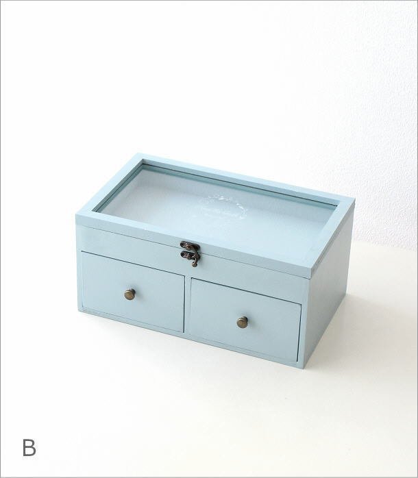 - アクセサリーケース 木製 ガラス 小物入れ ジュエリーケース 引き出し付きクリアケース 【Bカラー】 送料無料(一部地域除く) hbr1662b